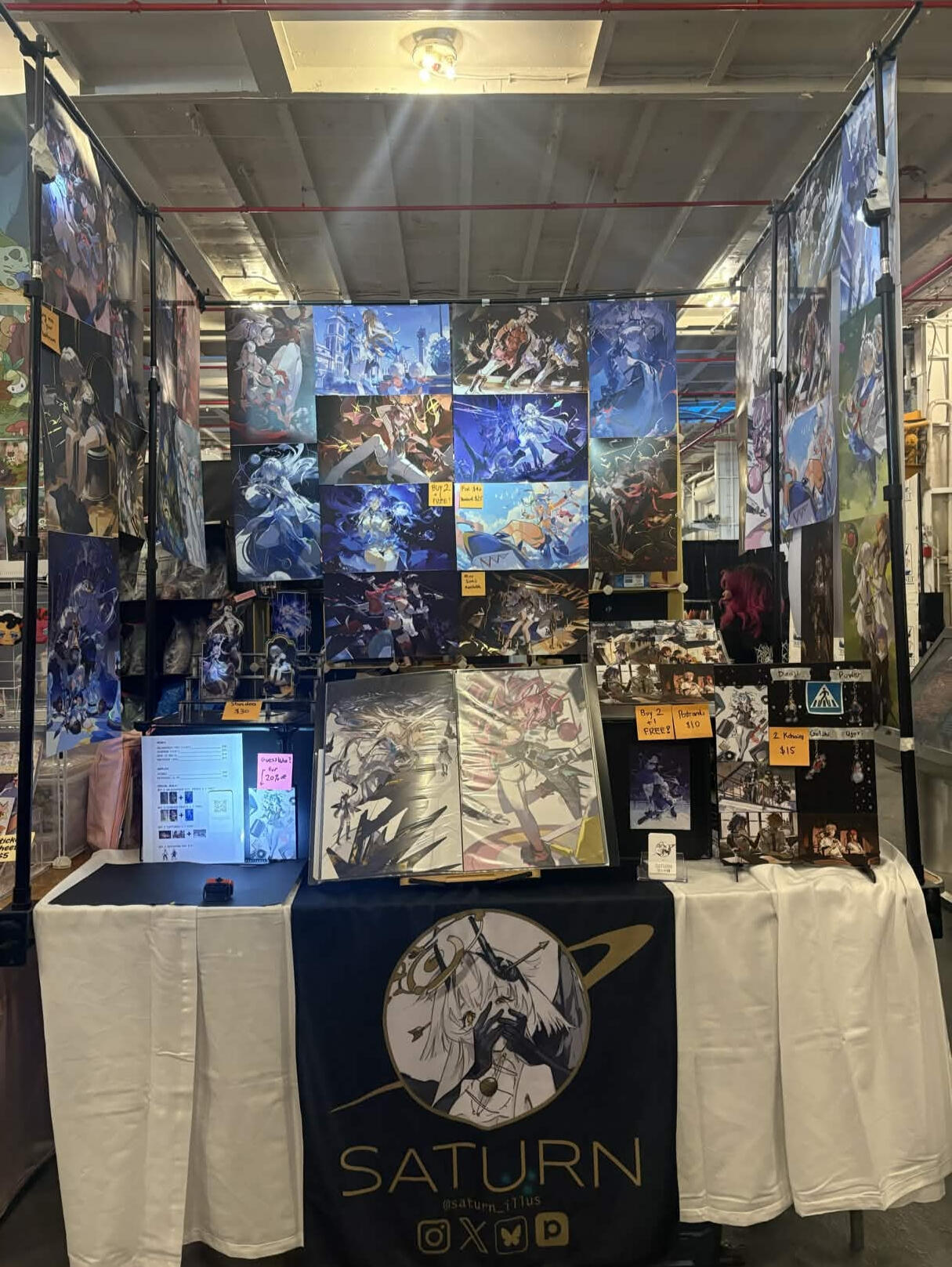Hello! I'm Saturn, I've been drawing since 2021. I used to do primarily background illustrations before transitioning to including character-centric illustrations.I mostly draw illustrations from gaming/anime franchises such as Genshin Impact, Honkai Star Rail, Wuthering Waves, Arknights, Uma Musume, Frieren, Chainsaw Man, and more.I've also had the great opportunities to do commissions for Hoyoverse, Hypergryph, Mica, and more. I'm also please to be apart of the Wuthering Waves Artist Creator Program.If you happen to see me at a convention, you can expect to be able to buy prints, acrylics, and postcards featuring my work! Some prints are also holographic foiled for that extra artist flair that uniquely identifies it as mine!